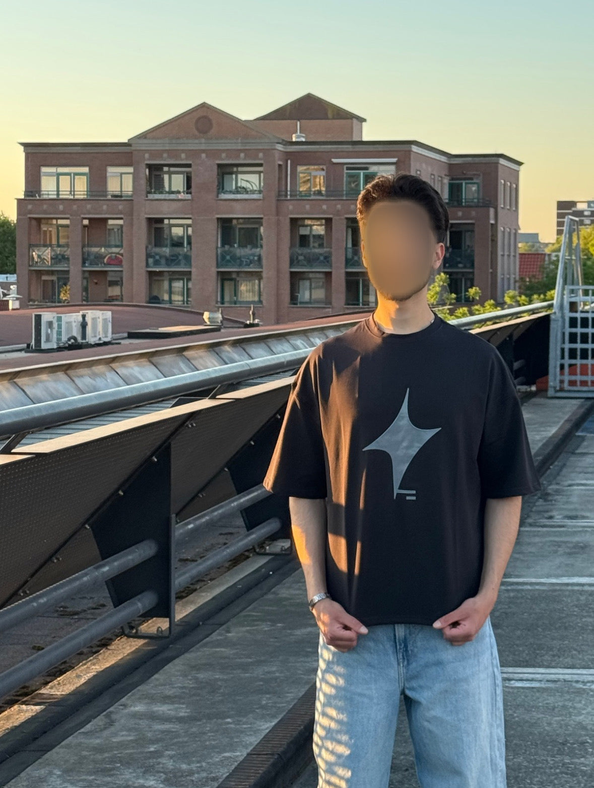 Made from 93% cotton and 7% spandex, this tee combines softness with a slight stretch. Designed with an oversized fit and cropped cut for a modern streetwear look.